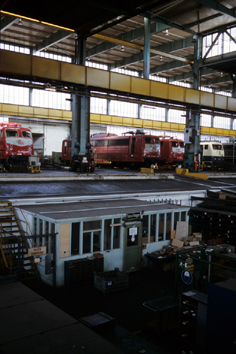 Richthalle für Elektrolokomotiven, bestehend aus zwei in den Jahren 1938-41 und 1940-42 errichteten Hallen, dabei einheitlich als monumentaler Stahlbeton-Rasterbau im rhythmischen Wechsel von Sichtziegelmauerwerk